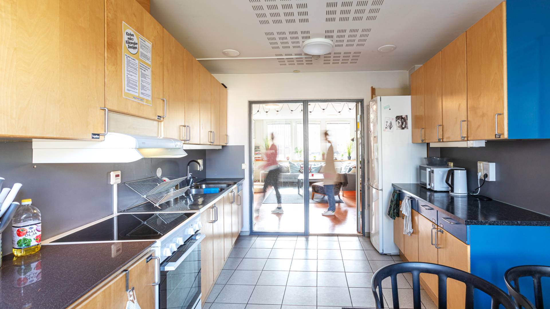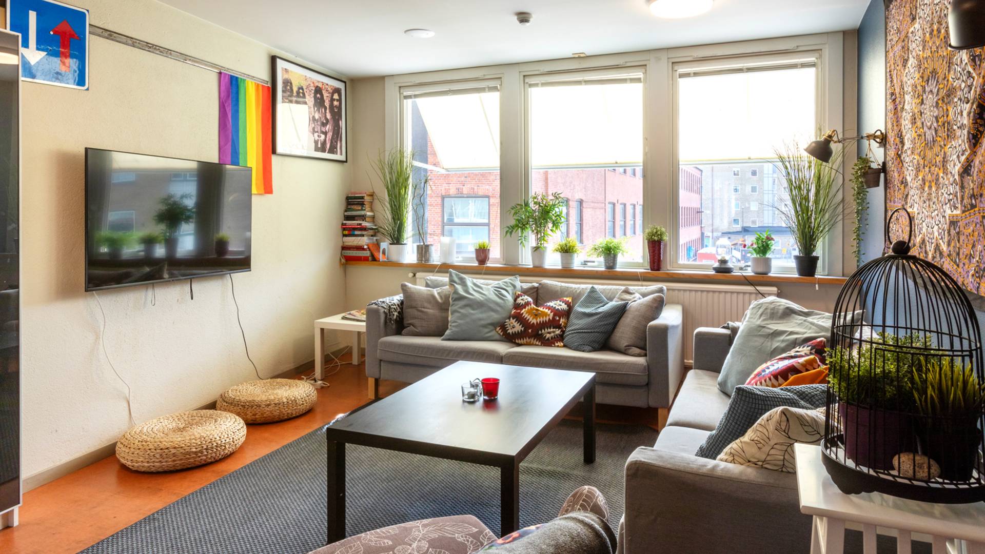 Kollektivlägenheten är fördelad på två våningar och erbjuder generösa gemensamma ytor med kök, vardagsrum, växtverkstad och en stor balkong för sociala stunder. Wifi ingår, och de gemensamma ytorna på cirka 65 kvm är perfekta för dig som värdesätter samvaro och vill lära känna nya människor.