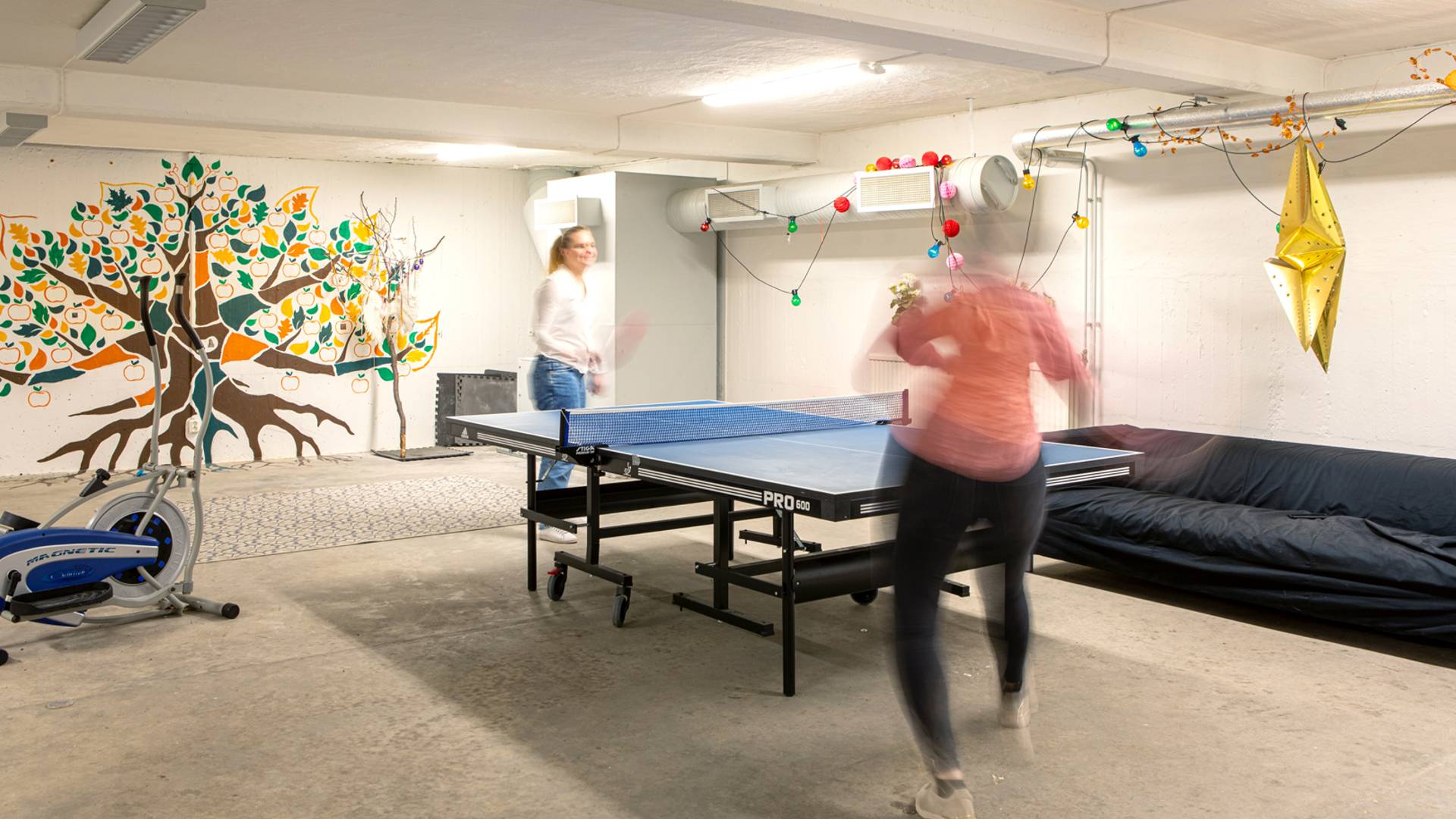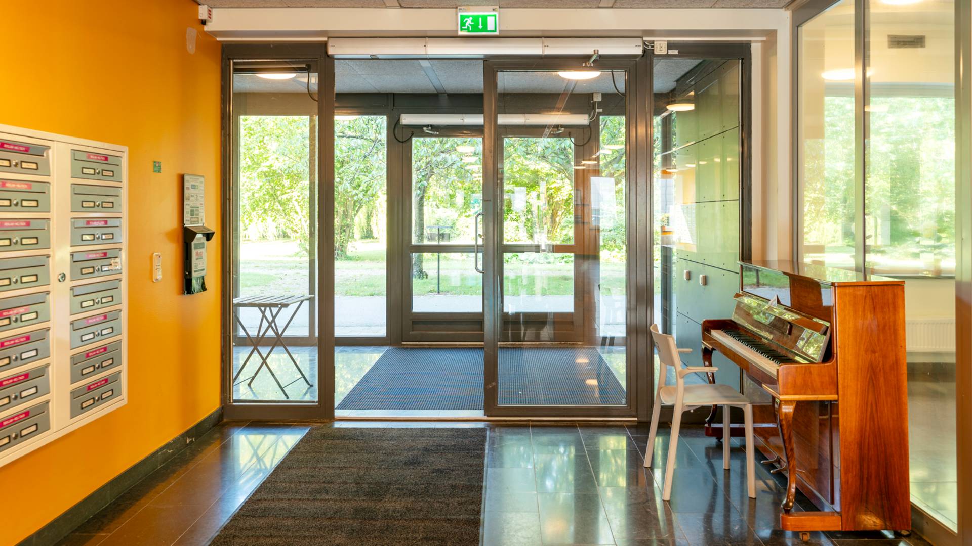På bottenplan hittar du gym, pingisbord och bytesrum, samt ett bemannat kontor med reception öppet varje vardag för service och trygghet.