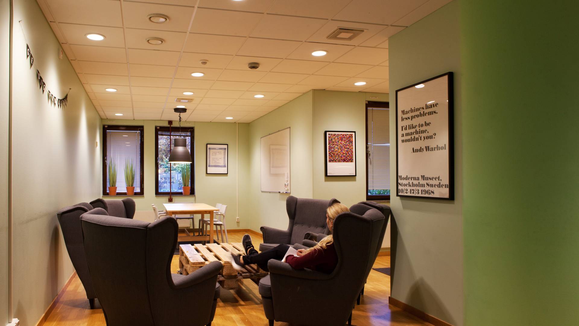 Gemensamma utrymmen gör vardagen roligare: sällskapsrum, studierum, biljardrum och pingisrum finns att tillgå. Varje våning har en egen tvättstuga, och korridorerna är ljusa tack vare glaspartier mot samlingsrum och tvättstuga. Extra förråd till varje lägenhet finns i källaren.