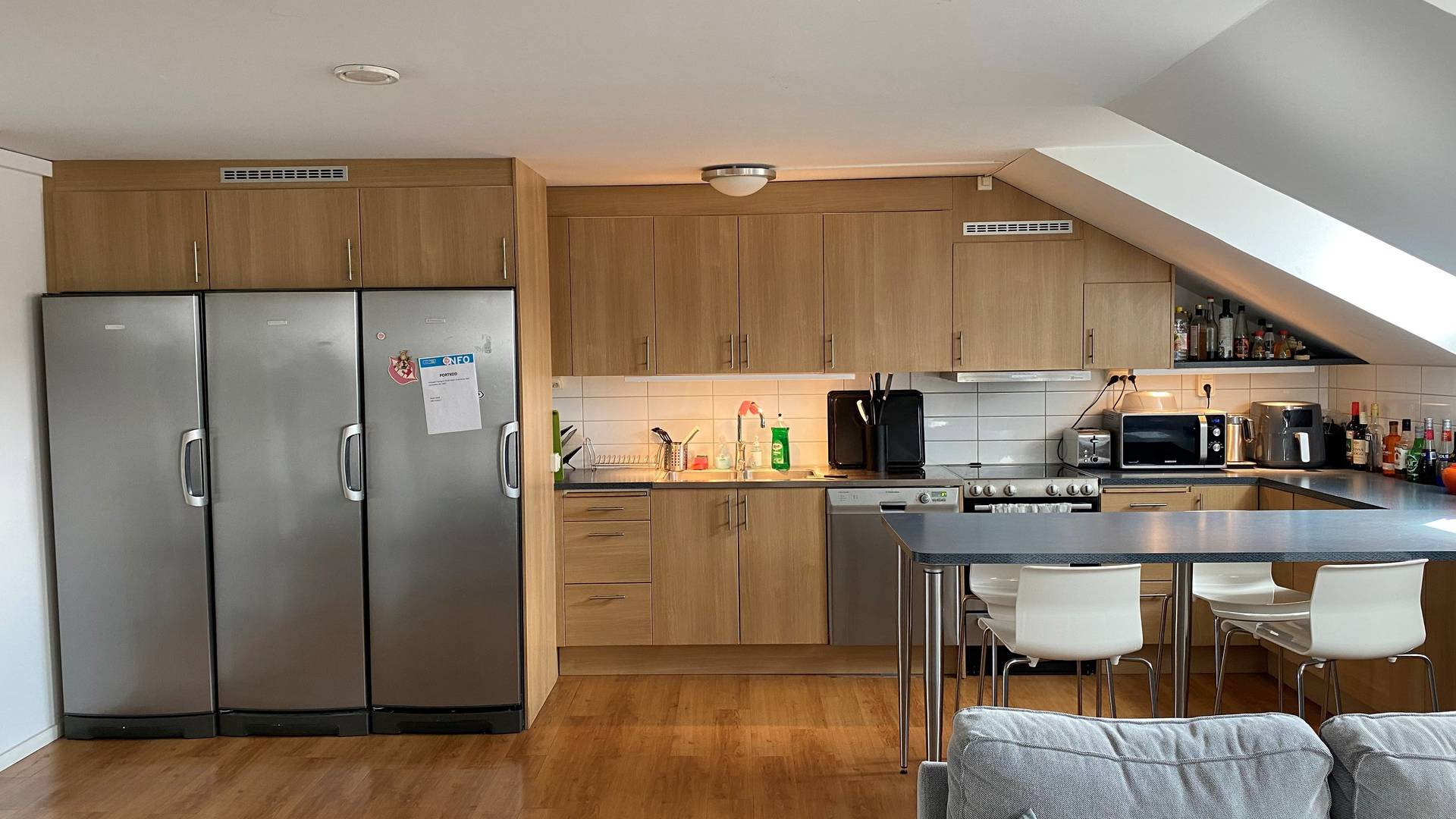 Högst upp i ett vackert hus i Rörsjöstaden hittar du en unik vindsvåning på hela 146 kvadratmeter – ett perfekt boende för dig som vill dela lägenhet med andra studenter och få gemenskap på köpet. Här bor du tillsammans med tre andra studenter och har ditt eget möblerade sovrum. Lägenheten har ett stort gemensamt badrum med tvättmaskin, torktumlare och dusch, samtidigt som du har din egen toalett. Köket och vardagsrummet är öppna och fullt möblerade, redo för härliga middagar och sociala stunder.