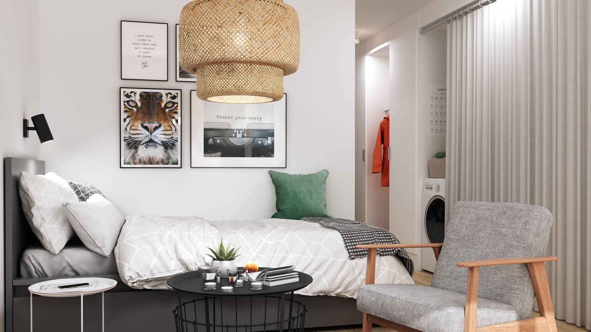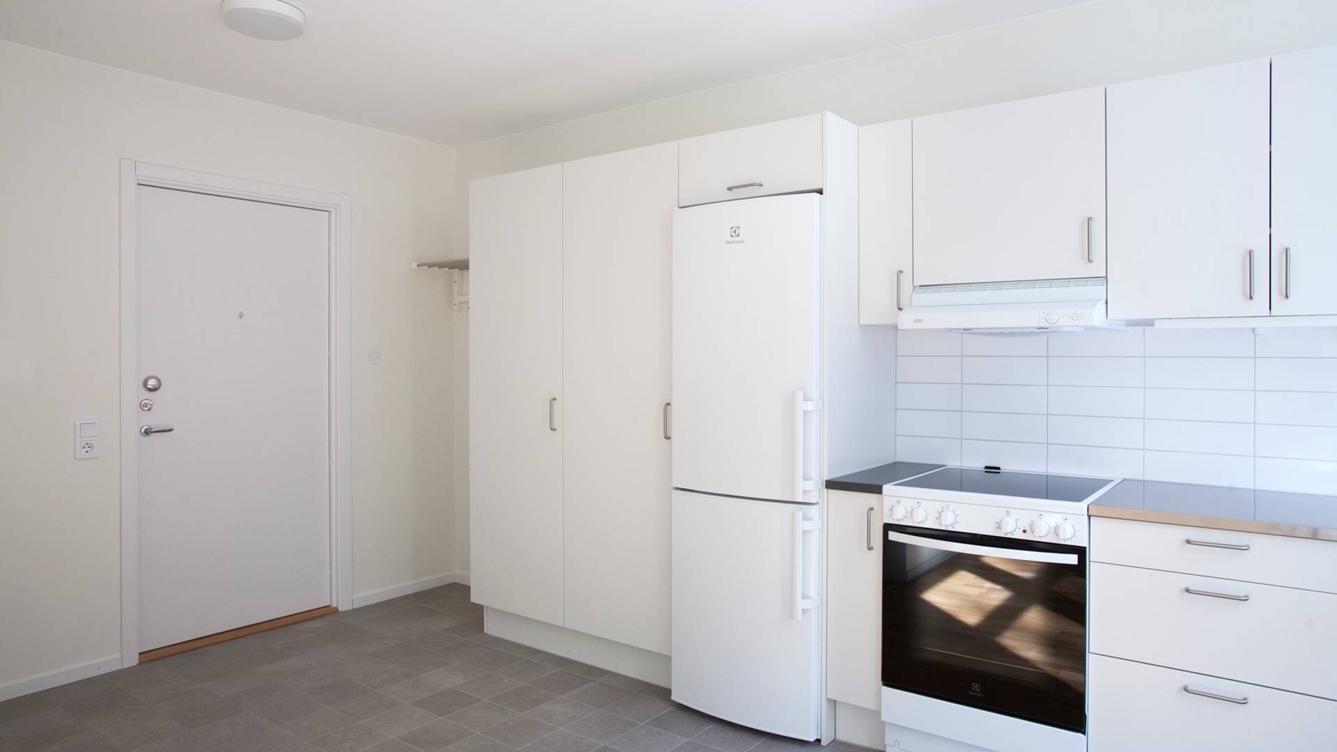 Här finns ettor och tvåor med eget kök, från 21 till 45 kvm. På våningsplanen finns två tvättstugor med tvättmaskiner, torktumlare och torkskåp, allt för att göra vardagen enkel och bekväm.