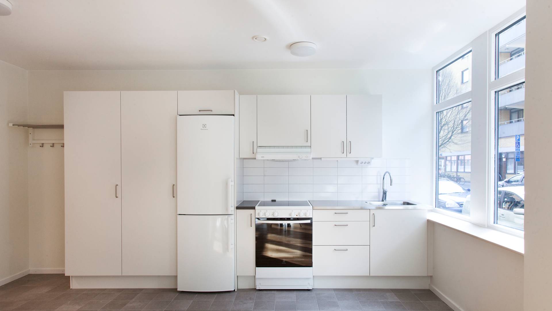 I huset rymmer 9 stycken studentlägenheter bottenplan omringat av andra MKB lägenheter, färdigställda i maj 2020. Lägenheterna varierar från 18 till 33 kvm, alla med eget kök och badrum för din bekvämlighet. På gården finns en tvättstuga med tvättmaskin, torktumlare och torkskåp, samt en gemensam grönskande innergård.