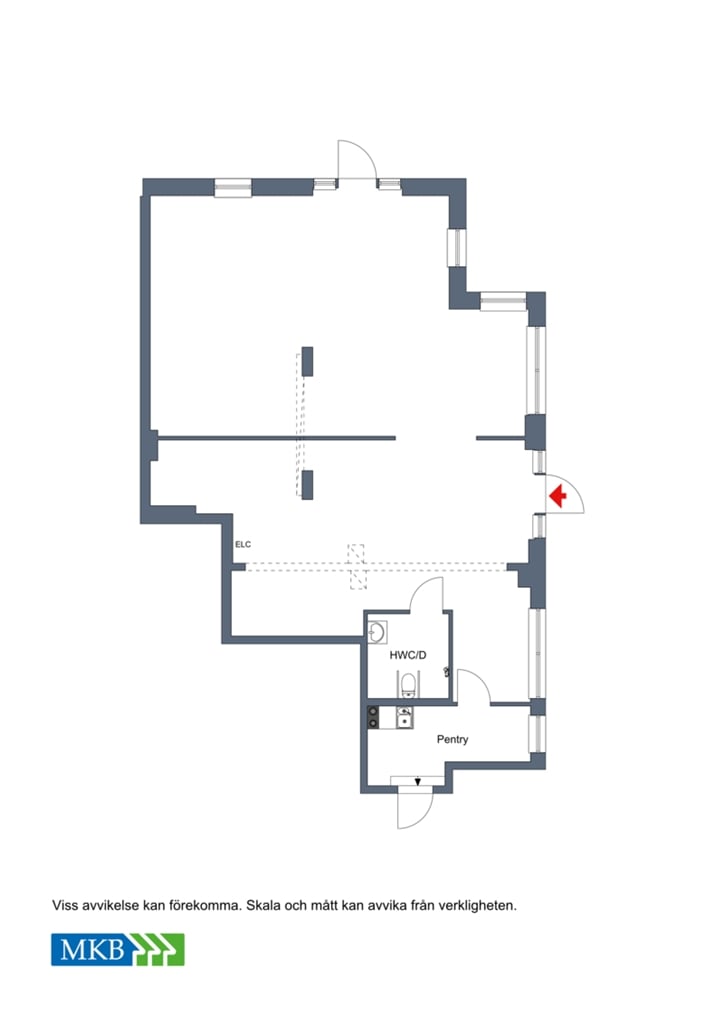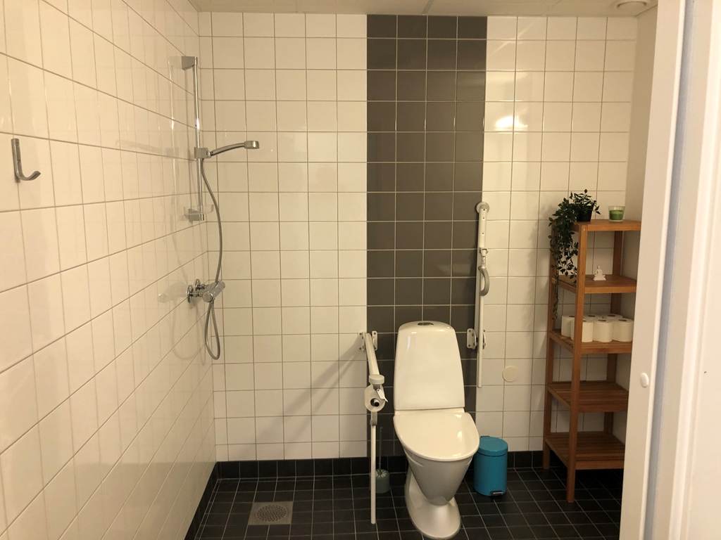 De ljusa materialvalen, med grått golv och vita väggar, ger lokalen en modern och stilren känsla, vilket gör det lätt att skapa den stämning du vill ha för din verksamhet. Lokalen är dessutom tillgänglighetsanpassad med dörrautomatik och HWC med dusch på samma plan, vilket gör det enkelt och bekvämt för alla att besöka.