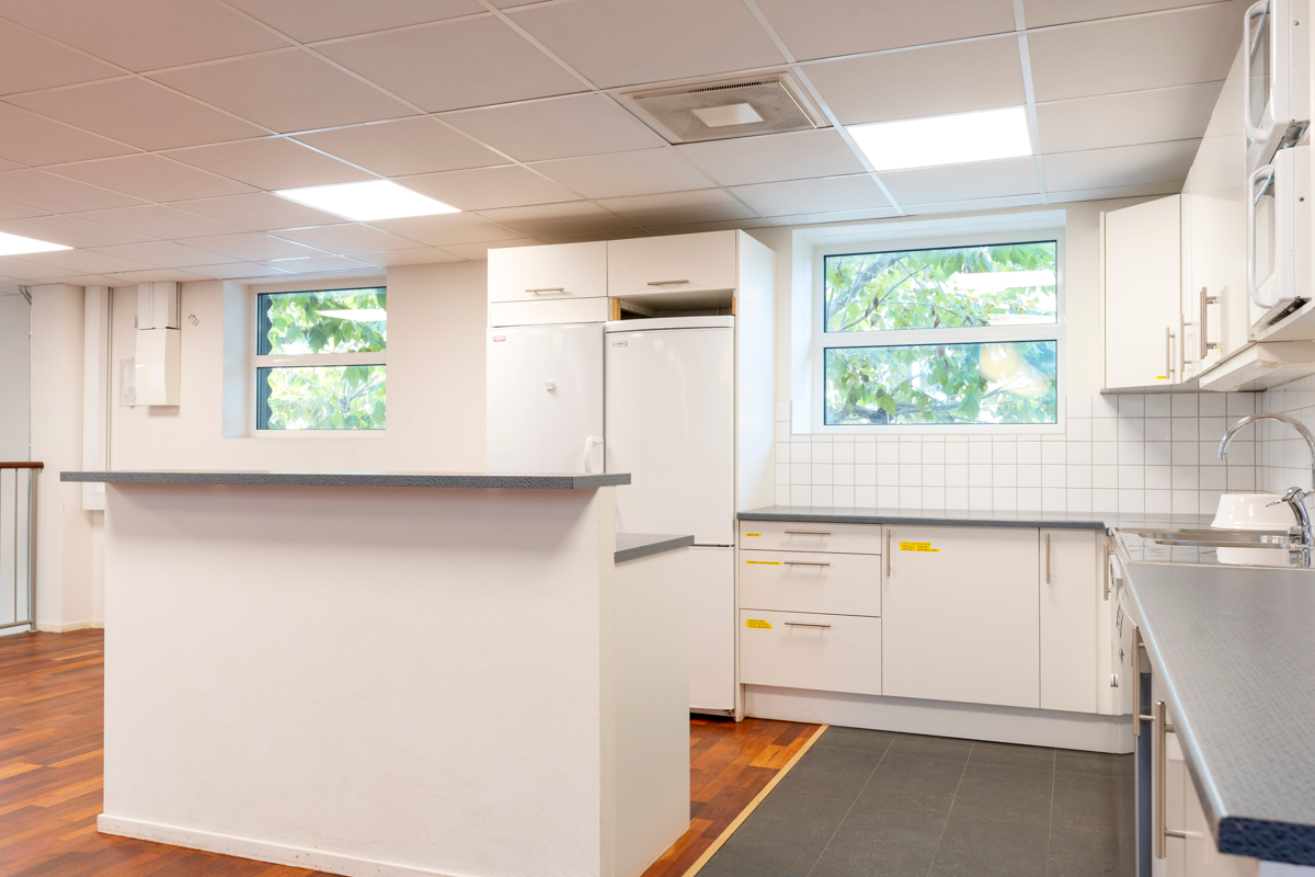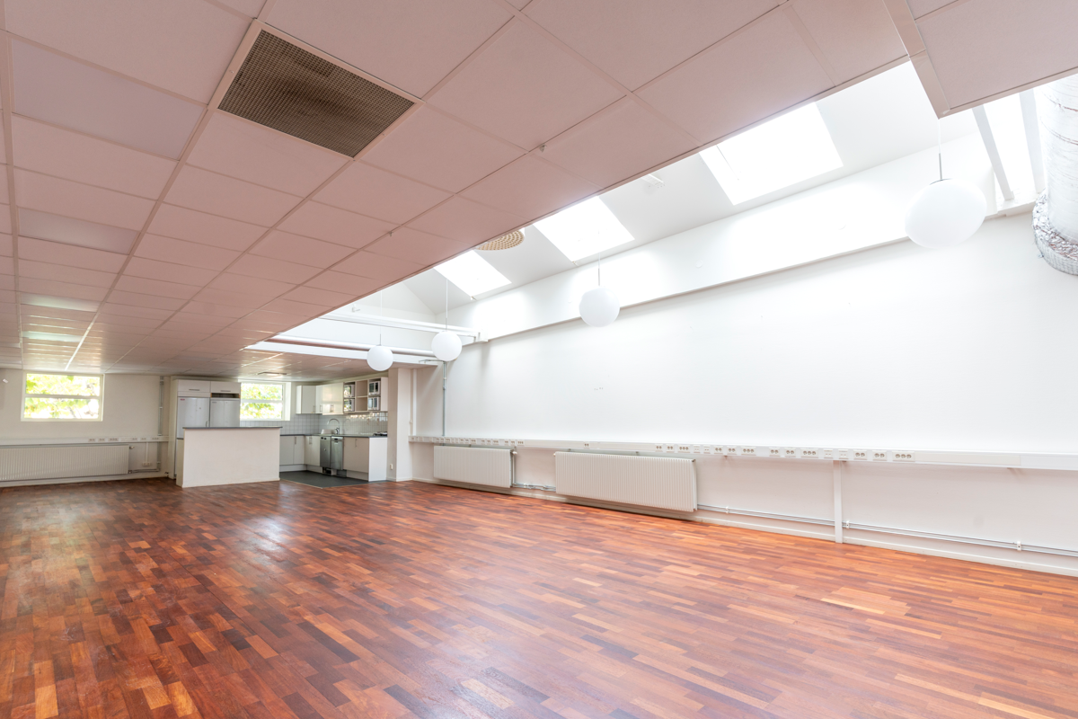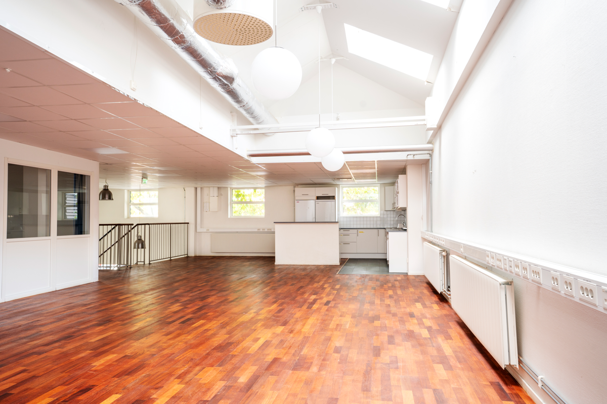 På ovanvåningen finns tre kontorsrum samt stora gemensamma ytor som skapar en trivsam miljö och möjliggör både enskilt arbete och samarbete. Kombinationen av kontorsytor och öppna ytor ger goda förutsättningar för att anpassa lokalen efter verksamhetens krav.